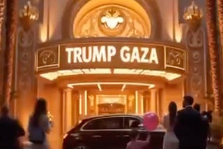 "Donald's coming to set you free, bringing delight for all to see. Feast and dance, the deal is done — Trump Gaza, No. 1!"